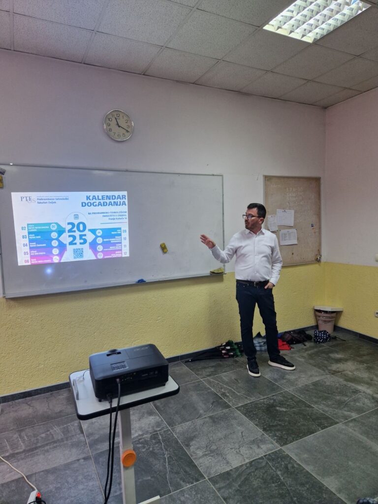U utorak 11.3. našu školu posjetili su predstavnici Prehrambeno-tehnološkog fakulteta iz Osijeka. Učenicima završnih razreda prezentirali su mogućnosti studiranja na tom fakultetu te su ih upoznali s različitim studijskim programima koji se mogu studirati na PTFOS-u. Učenici su dobili mnoge korisne informacije te su se neki od njih sigurno zainteresirali za prehrambenu tehnologiju, prehrambeno inženjerstvo, nutricionizam, biotehnologiju ili pak farmaciju.