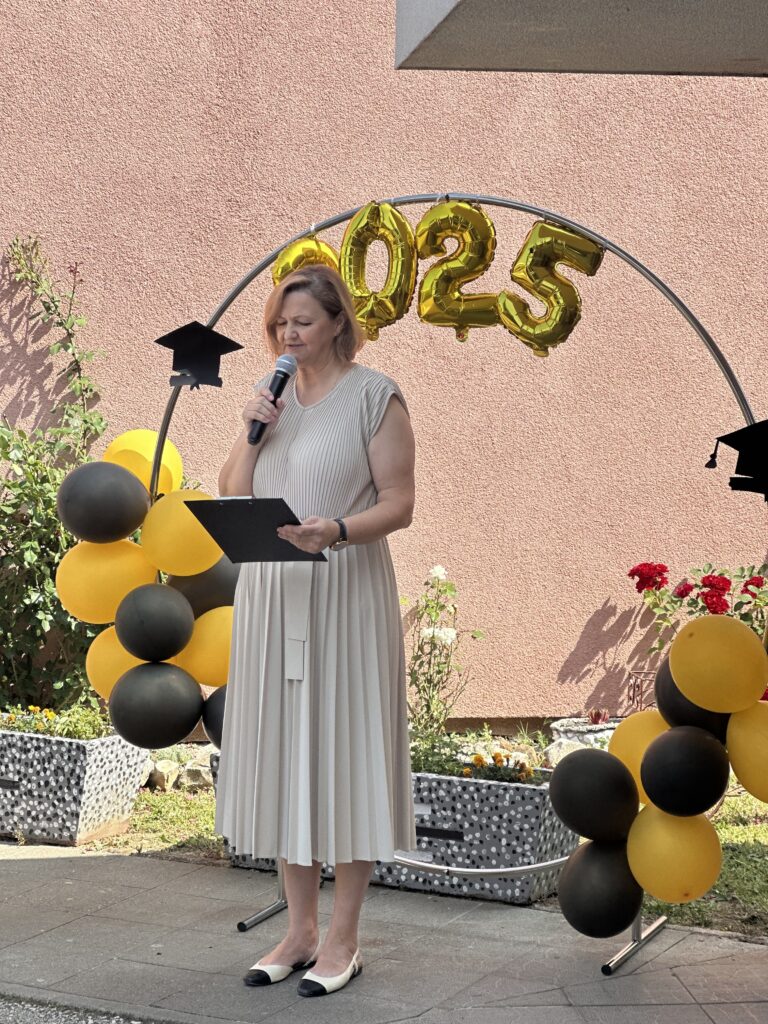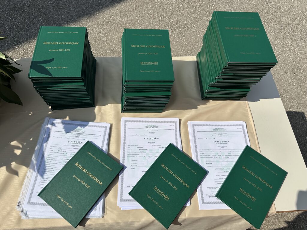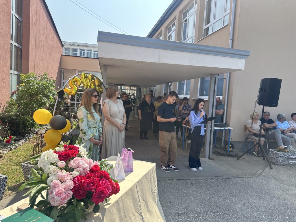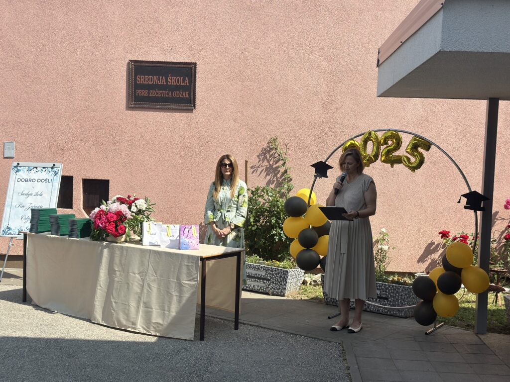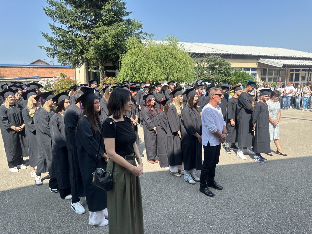 U 10 sati održana je svečana podjela svjedodžbi maturantima koja je započela minutom šutnje za nedavno preminule profesore naše škole Antu Zrakića i Amiru Sejdinović.