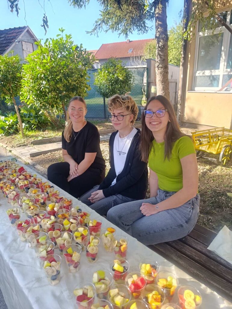 Danas su učenici gimnazije, zajedno s profesoricom Katarinom Čamber, pripremili voćnu salatu kojom su počastili učenike i profesore naše škole. Kao i prethodnih godina, tijekom protekle školske godine marljivo su odvajali plastiku, a za svoj trud nagrađeni su zdravim i ukusnim voćem.