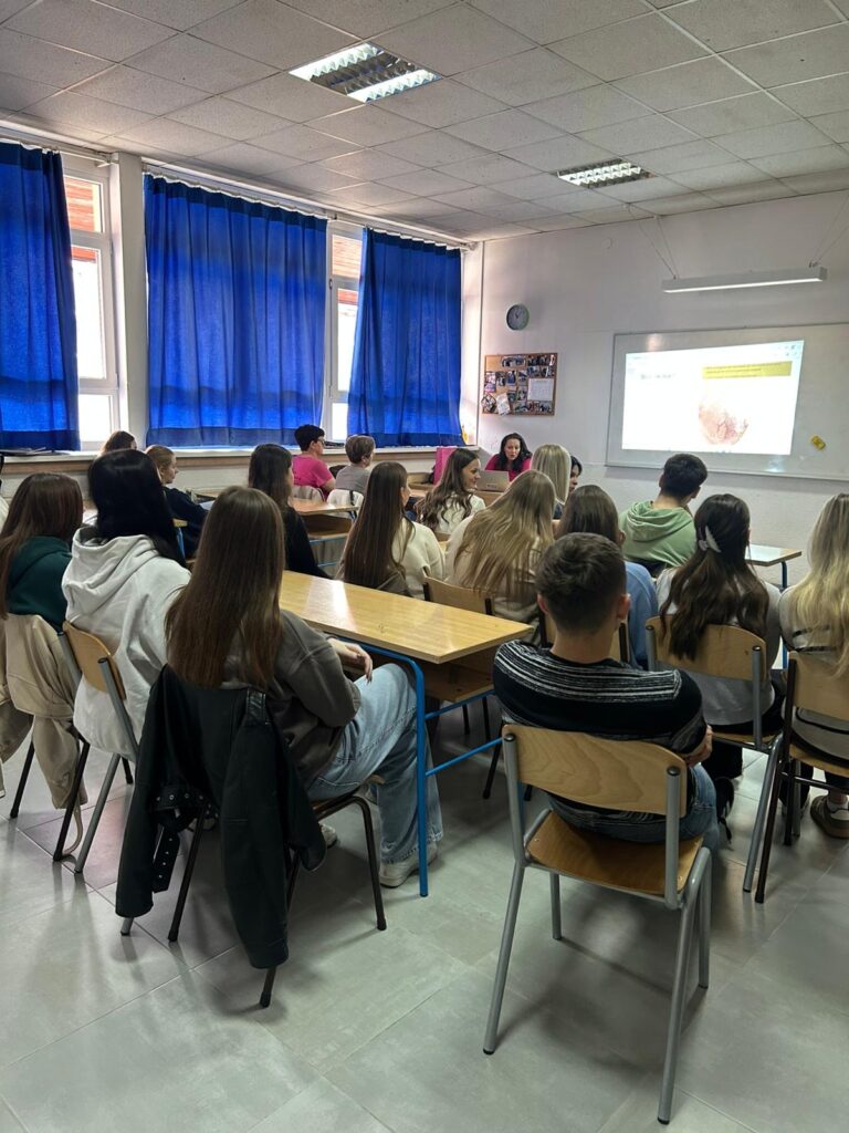 22.10.2025. u Srednjoj školi Pere Zečevića Odžak održano je edukativno predavanje predstavnica Udruge „Narcis“ na temu „Preventivni pregledi karcinoma dojke, ginekoloških karcinoma i HPV virusa“. Cilj predavanja bio je podizanje svijesti o važnosti redovitih preventivnih pregleda i rane dijagnostike, kao i informiranje mladih o rizičnim čimbenicima i mogućnostima zaštite od malignih bolesti. Predstavnice Udruge „Narcis“ govorile su o važnosti samopregleda dojki, redovitih ginekoloških pregleda te o ulozi HPV cijepljenja u prevenciji pojedinih vrsta karcinoma. Učenici i učenice imali su priliku postavljati pitanja i razgovarati o temama koje su od velike važnosti za očuvanje zdravlja. Zahvaljujemo Udruzi „Narcis“ na korisnom i poučnom predavanju te na njihovom dugogodišnjem angažmanu u području prevencije i edukacije mladih o zdravlju.